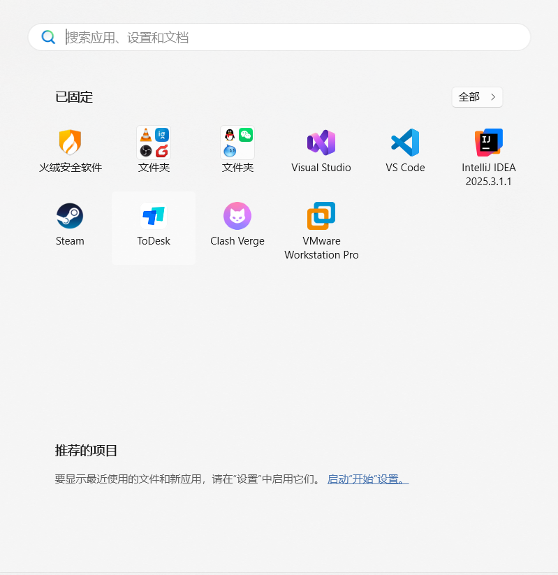 win11 25H2。菜单栏禁止再往显示器两边或顶部调整后,又在开始菜单栏下半部分弄了一个大大的”全部”列表。这狗屎的列表无法被隐藏或者移除。